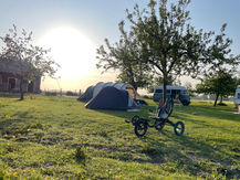 Onze minicamping telt 10 plekjes in onze weelderige boomgaard. Er is een buitendouche met uitzicht over de weilanden en een compost toilet voor een ecologische wc-ervaring. Als de groepsruimte niet is afgehuurd door groepen is ook de badkamer daar te gebruiken, met regendouche en "normaal" toilet. Kinderen kunnen naar hartelust spelen op de trampoline, traptractors, zandbak en knuffelen met de boerderijdieren.